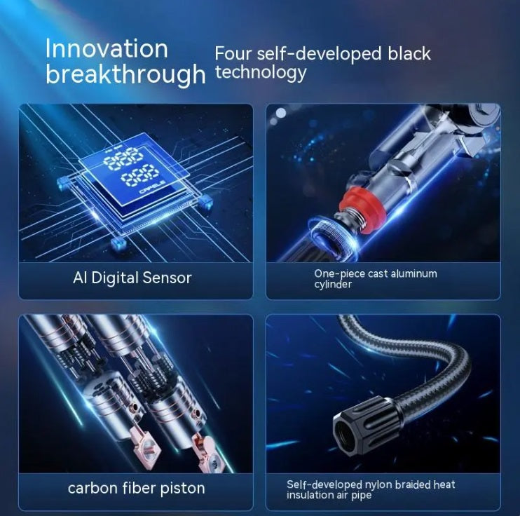 π High Power 220W Fast Inflation: Quickly inflates car tires with a powerful 220W motor, reducing wait time and getting you back on the road in minutes.